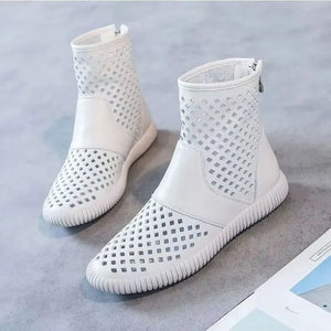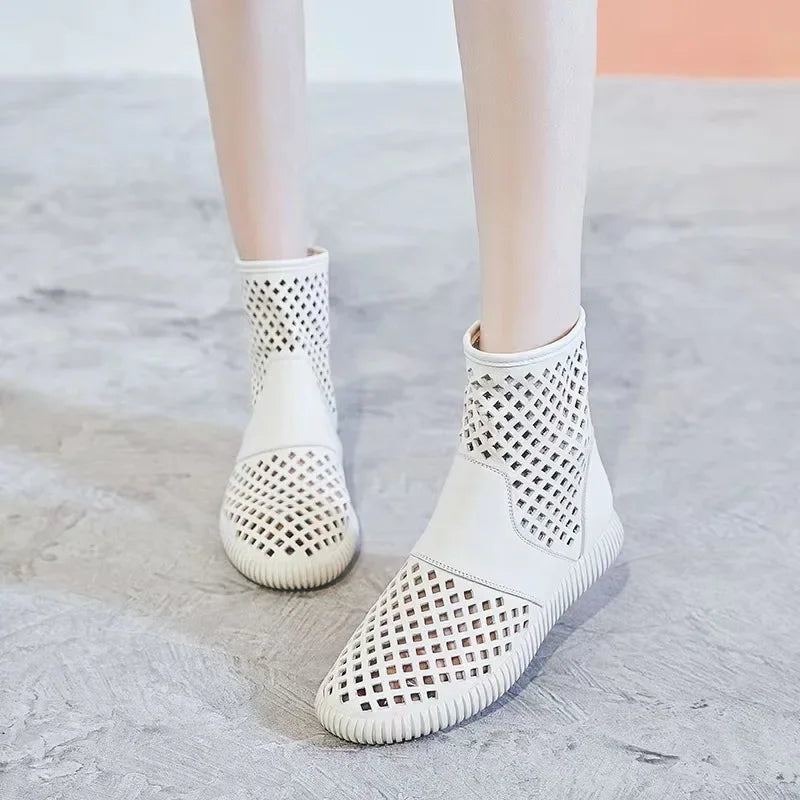 2023 weiche Leder Loch Schuhe frauen Schuhe Sommer Neue Hohl Sandalen Flache Outdoor frauen Kurze Stiefel Plattform Schuhe
