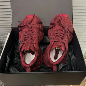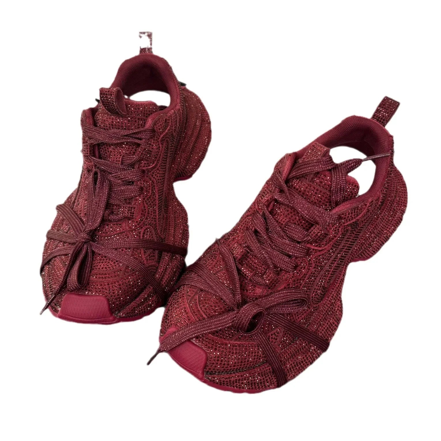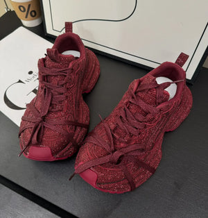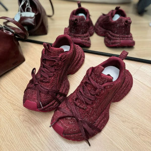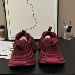 2024 Spring and Autumn New Women's Rhinestones Full of Diamonds Straps Thick-soled Angola Red Niche Sports and Leisure Dad Shoes
