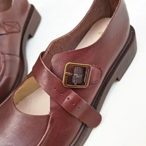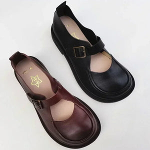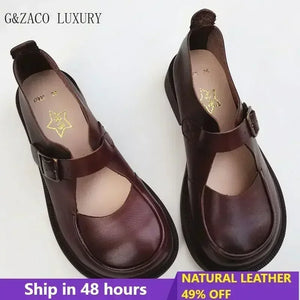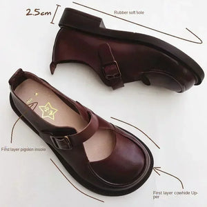 Autumn British Wide Toe Genuine Leather Women's Shoes Mary Janes Breathable Non-slip Cowhide Handmade Loafers Shoes