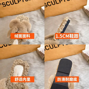 Fur Women Slippers Designer Autumn Winter Open Toe Wool Comfort Warm Shoes Fashion Flat Casual Outdoor Leisure Dress Slippers