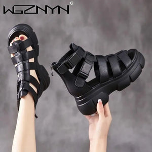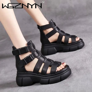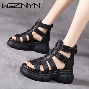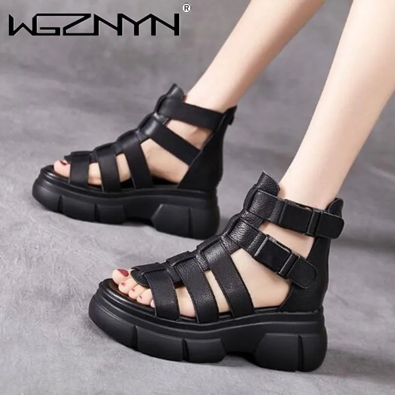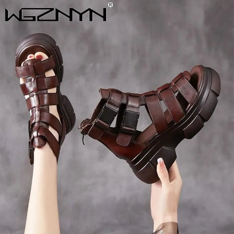 Handgemachte Echte PU Leder Retro Schuhe Frauen Sandalen 2022 Neue Stiefeletten Sommer Handgemachte Hohl-out Casual Plattform Sandalen