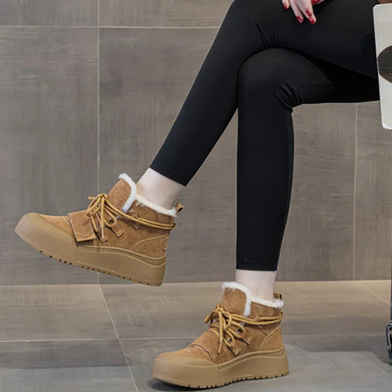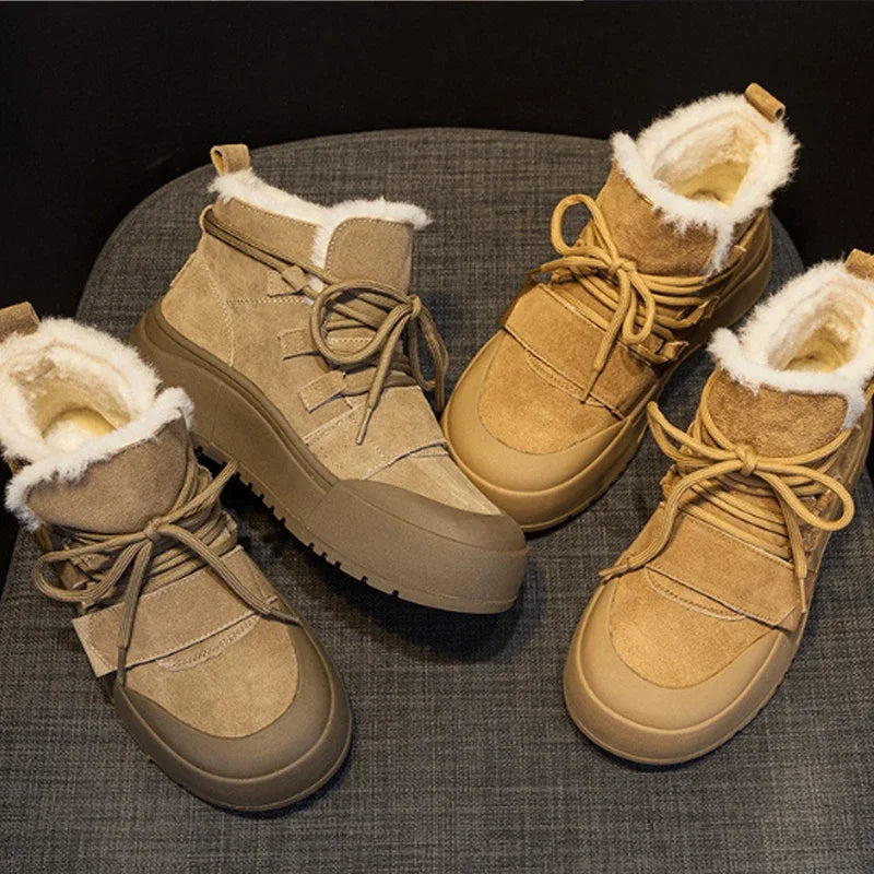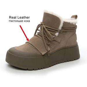 JOZHAMTA Size 35-40 Snow Boots For Women Suede Leather Plush Fur Thick Heels Shoes Winter 2025 Platform Warm Furry Ankle Boots