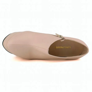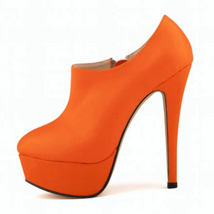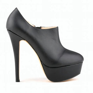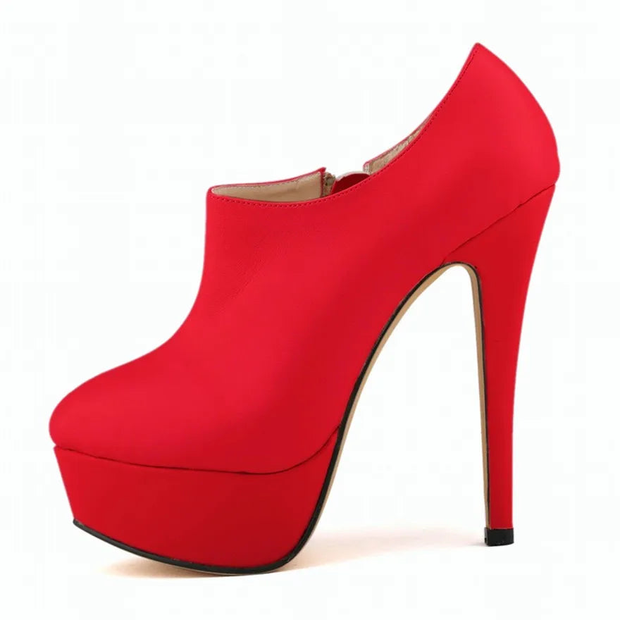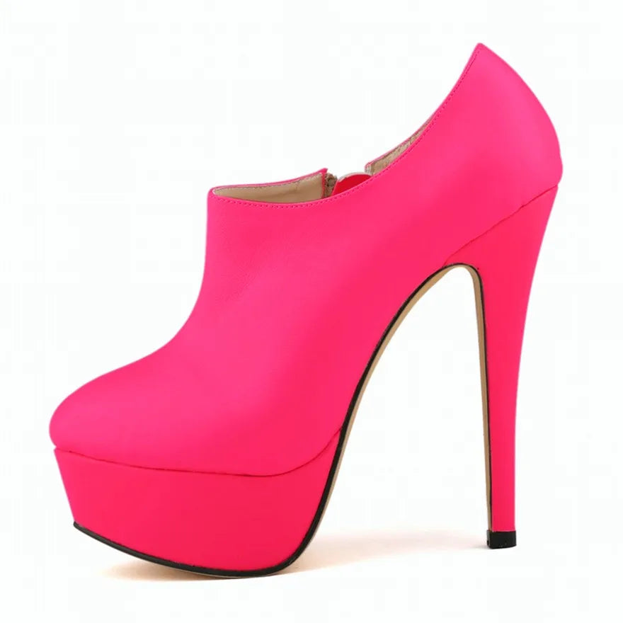 LOSLANDIFEN Concise Soft Leather Ankle Boots Platform Zipper Short Boots Fashion Women's Shoes 14cm Super High Heels Shoes Woman