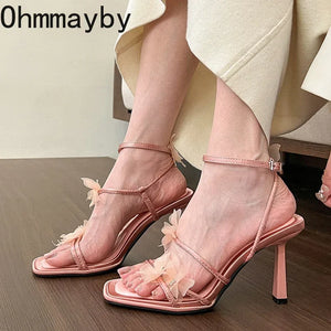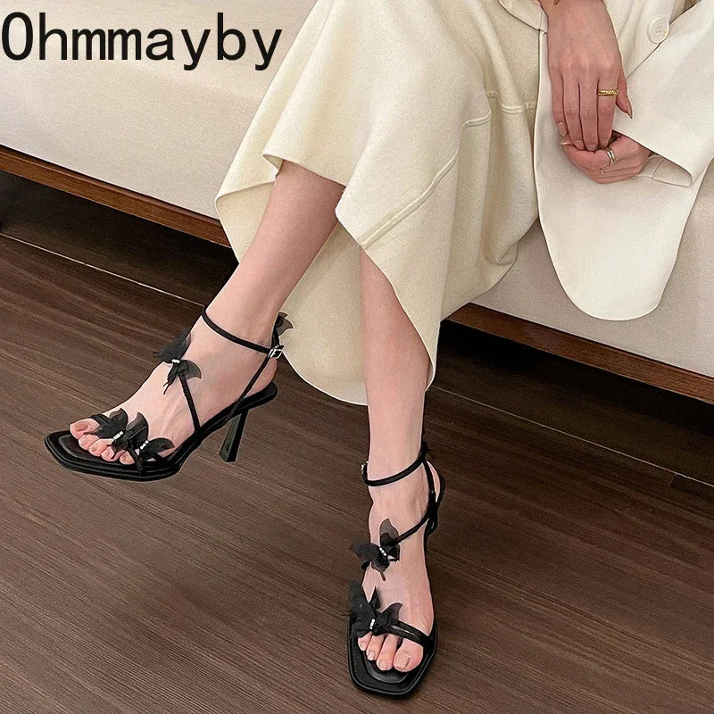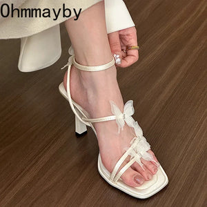 Luxury Designer Summer High Heel Woman Sandals Fashion Elegant Butterfly-knot Shoes Ladies Outdoor Party Dress Sandalias