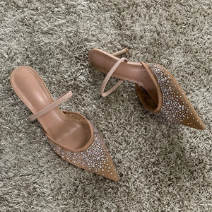 New Summer Women's Sandals Rhinestone Bright Mesh High Heels Footwear Elegant Slingback Pointed Slip on Party Lady Pumps Shoes