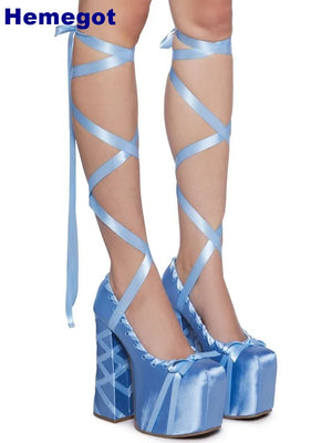 Plateau-Satinschleife, süße Mädchen-Sandalen, Sommer, runde Zehenpartie, Spitze, dicke High Heels, Ins-Stil, Lolita-Tanz, einfarbig, Party-Sandalen