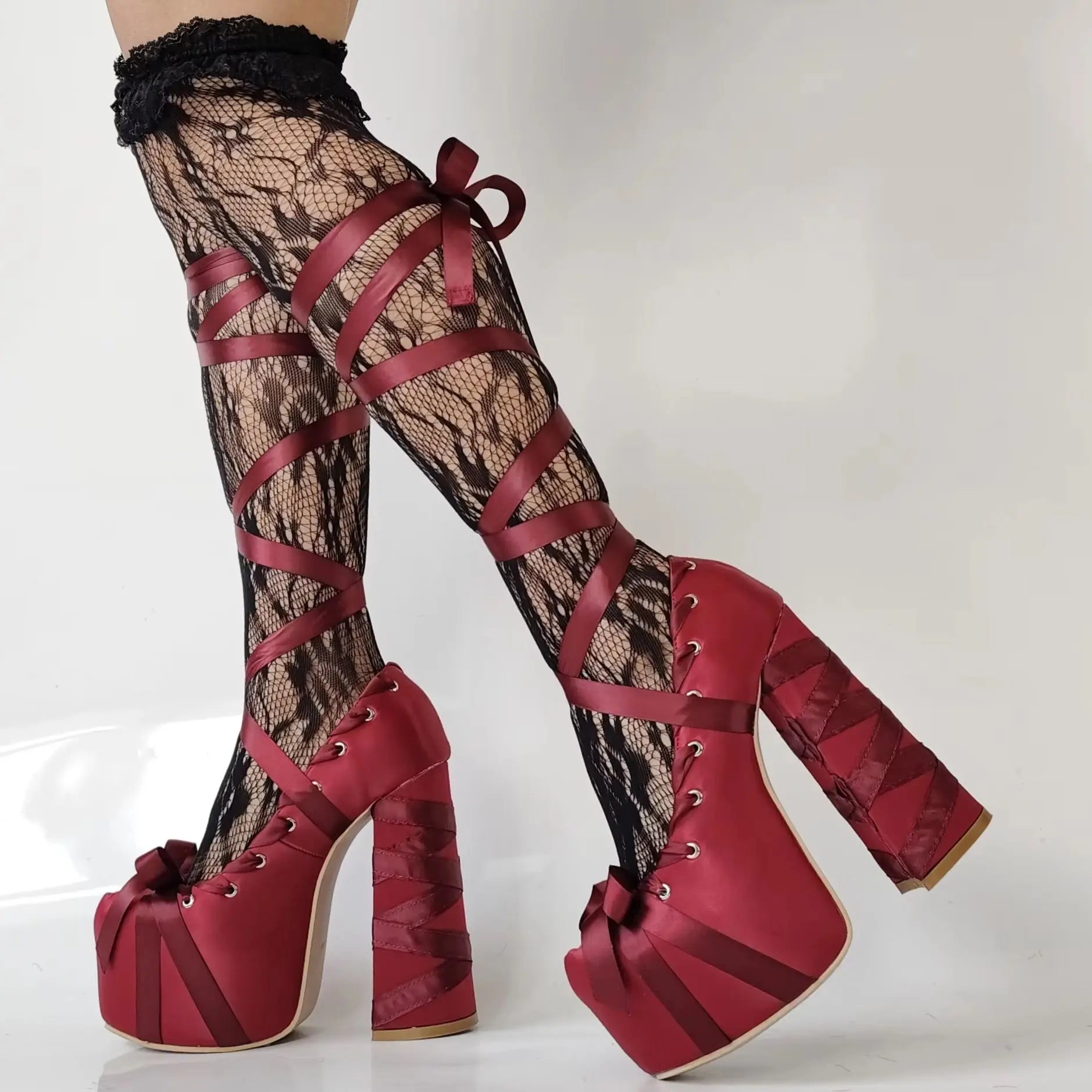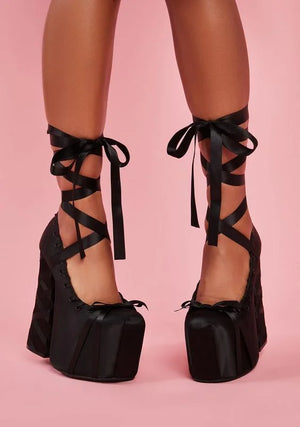 Produktname: Plateau-Satinschleife, süße Mädchen-Sandalen, Sommer, runde Zehenpartie, Spitze, dicke High Heels, Ins Style, Lolita, Tanz, einfarbig, Party-Sandalen