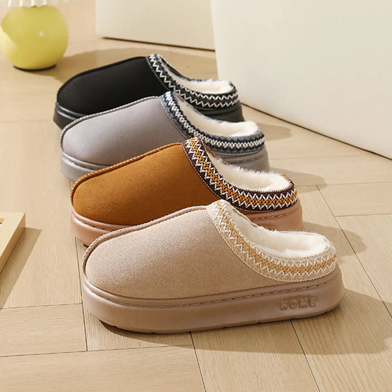 Winter Thick Bottom Cotton Slippers Women Home Closed Toe Fluffly Slipper Shoes Woman Soft Sole Warm Plush Slides Couple Shoes