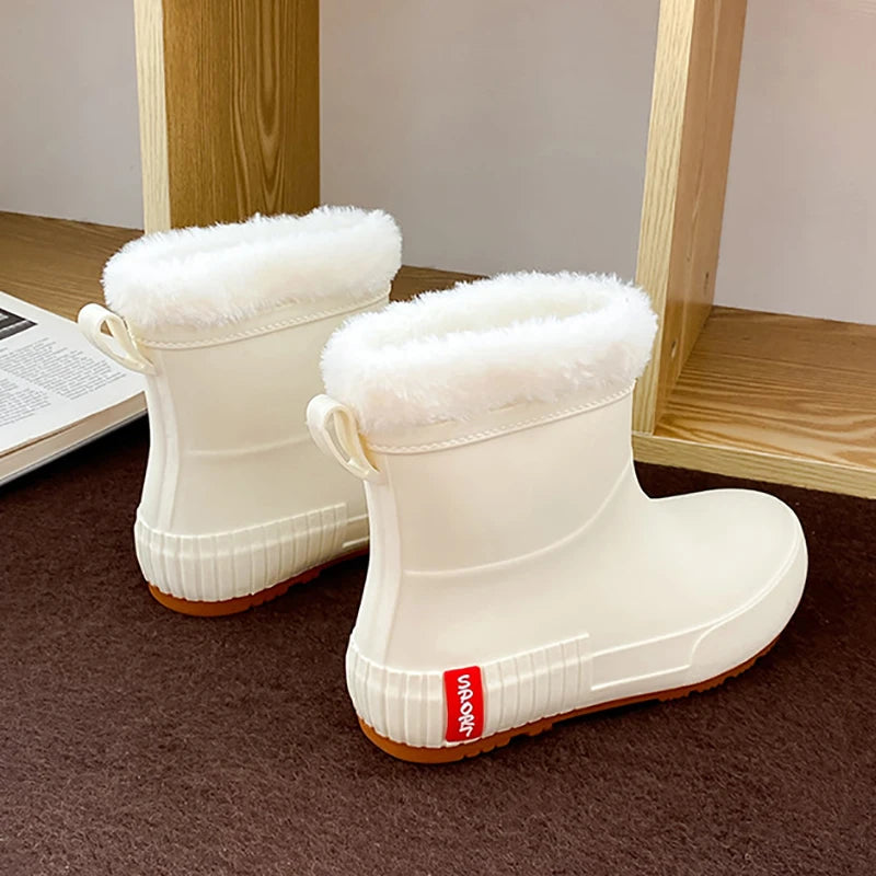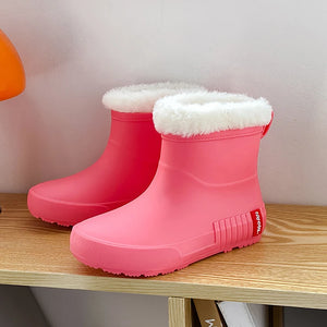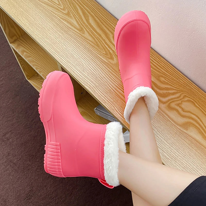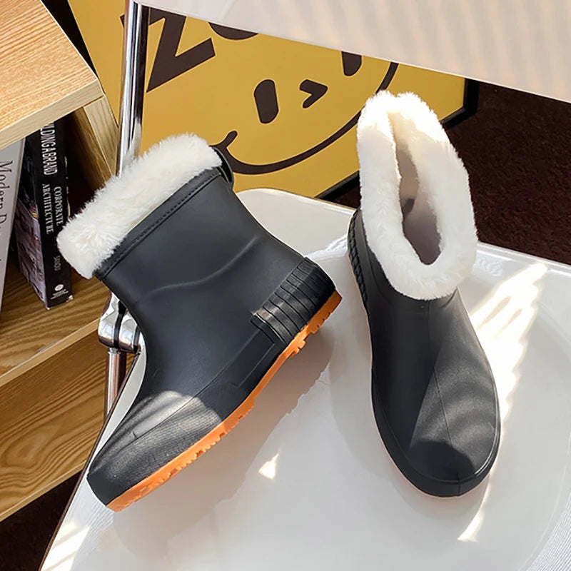 Winter Damen Warme Regenschuhe Gummistiefel Damen Warme Galoschen mit Fell Knöchel Regenstiefel Wasserdicht Garten Wasserstiefel Schuhe