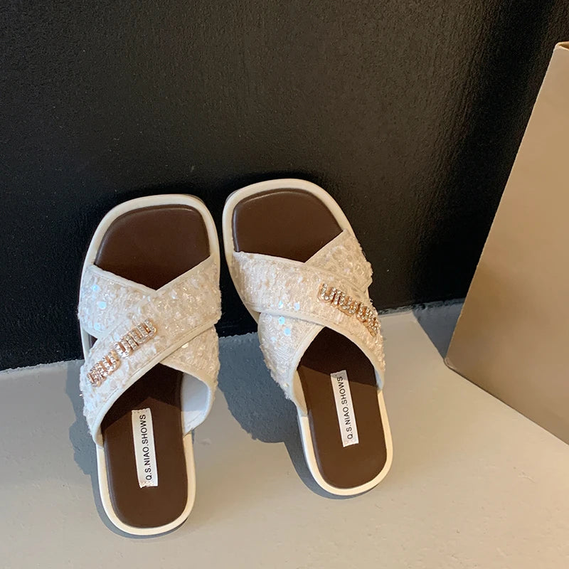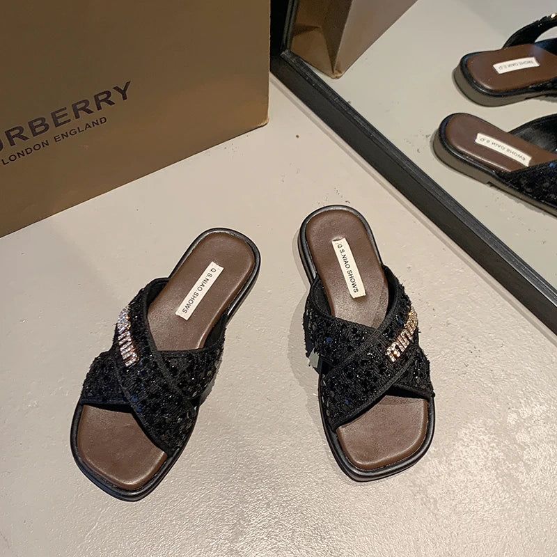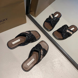 Women Shoes Summer New Vintage Woven Roman Sandals Fashion Open-Toe Sandals Female Slip-on Flats Beach Shoes Ladies Slipper