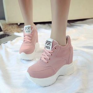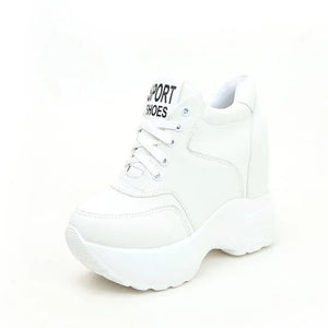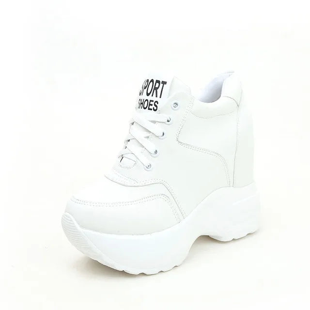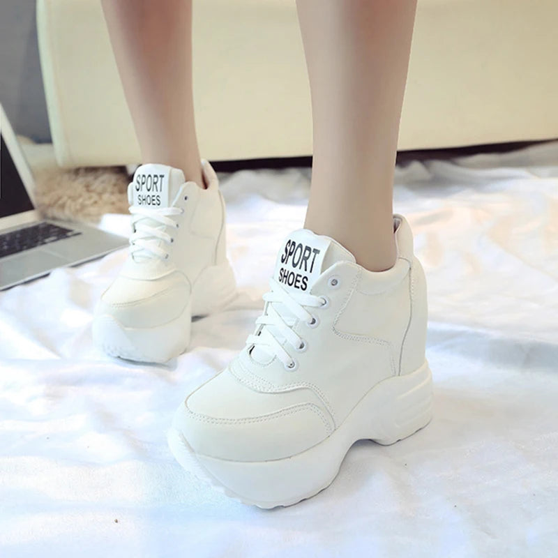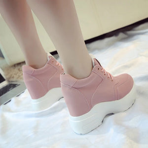Vulkanisierte Damenschuhe aus PU-Leder in Weiß/Schwarz/Rosa für Damen, modische High Heels, klobige Turnschuhe, Damen-Plateauschuhe