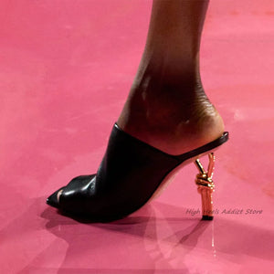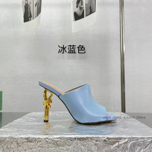 2024 Runway New Square Toe Leather Slippers Strange Style High Heels Colorful Mules Women's Luxury Designer Party Brand Shoes