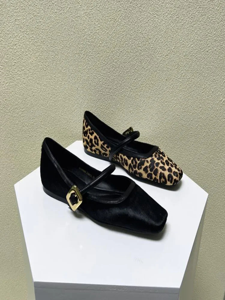 2024 Women's Flat Shoes Round Toe Leopard Print Casual Shoes Woman Breathable Slip-on Outdoor Soft Mary Jane Shoes 2024 New