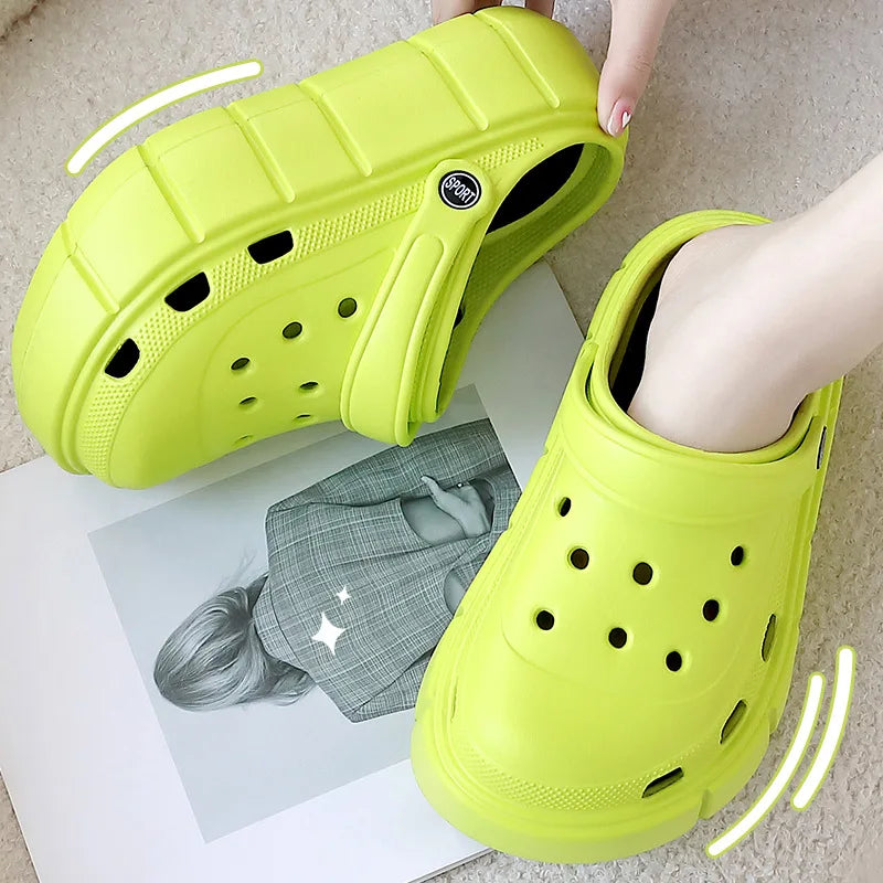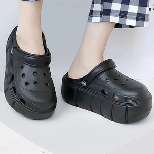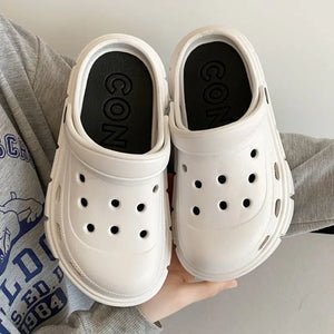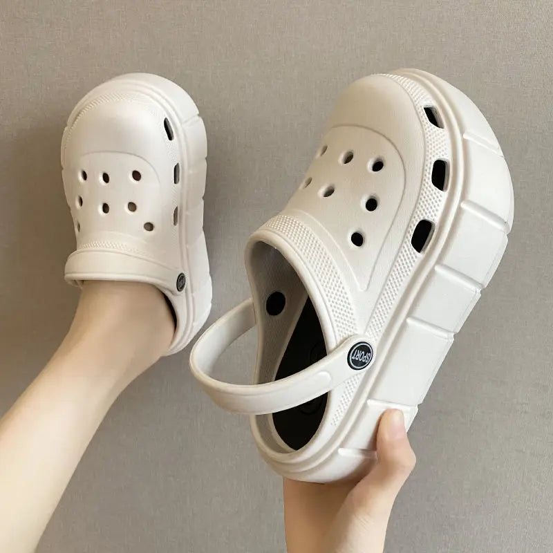 7cm Increase Thick Bottom Slippers For Women Summer Garden Mules Clogs White Chunky Platform Shoes With Holes Girls Beach Slides