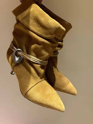 Autumn and Winter New Women's Slim Heel Short Boots, European and American Fashionable Pointed Low Heel Plus Ankle Boots