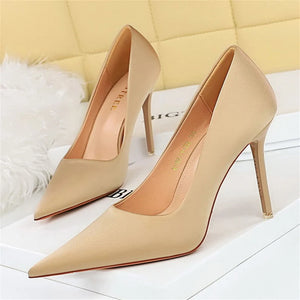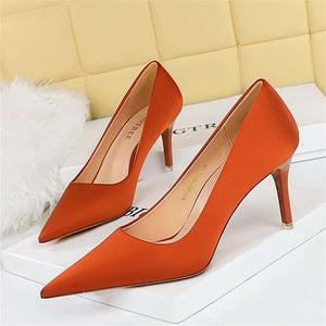 BIGTREE Spring Fashion Simple Matching High Heels Slim Heels Shallow Mouth Pointed Party Stripper Satin Women's Sngle Shoes