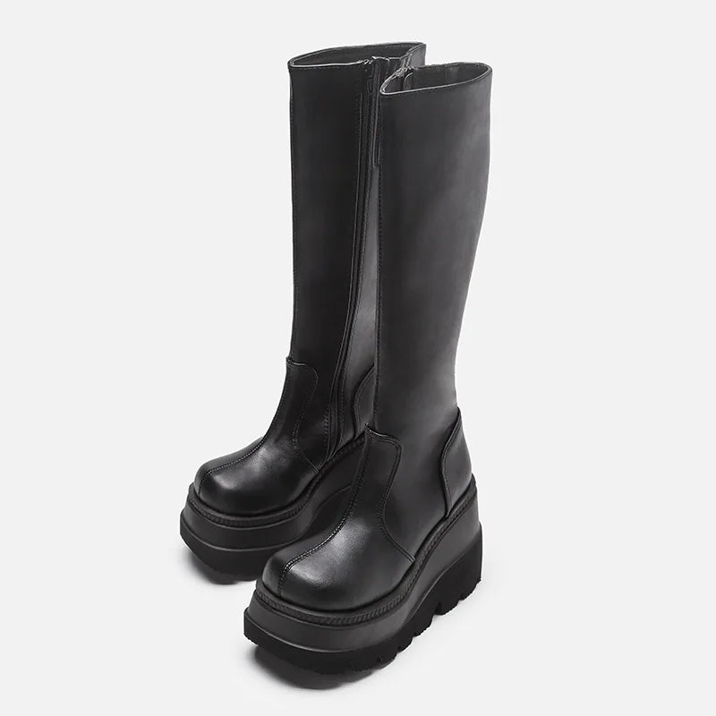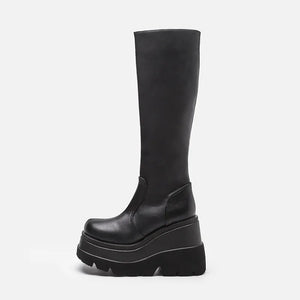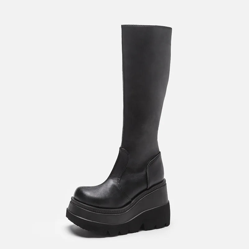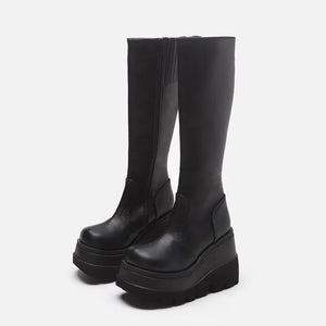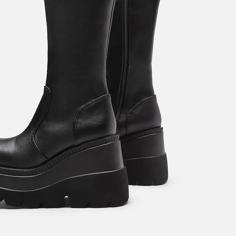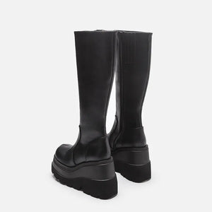 Bottes classiques à plateforme pour femmes, chaussures compensées à talons épais, mi-mollet, décontractées, de marque, à semelle épaisse, pour l'hiver