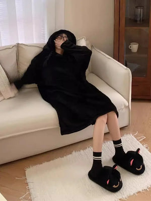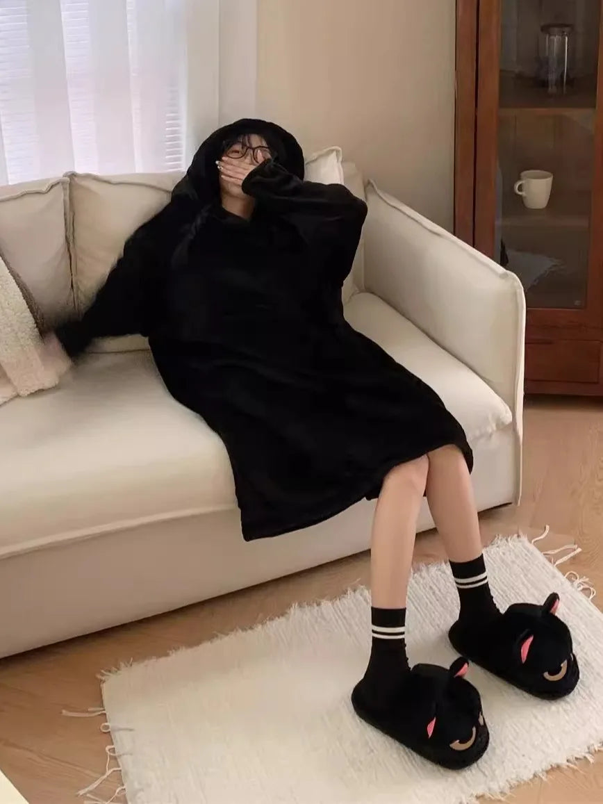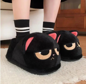 Chaussons d'hiver en coton motif chat noir pour homme et femme, chaussons chauds et antidérapants, pour couple, collection 2024