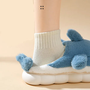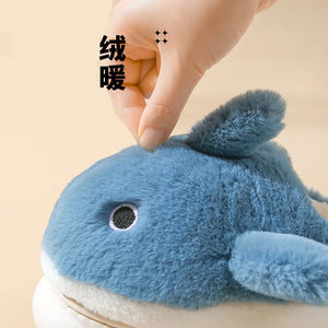 Cute Whale Cotton Home Slippers For Female 2023 Winter Couple Indoor Household Shark Thick Sole Men's Winter Cartoon Slippers