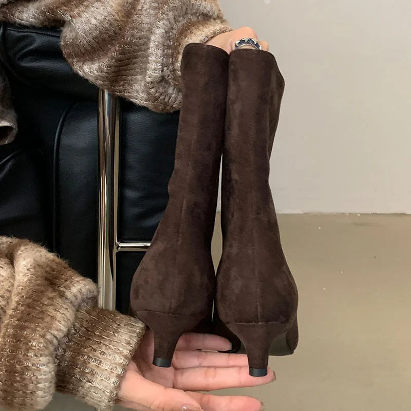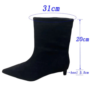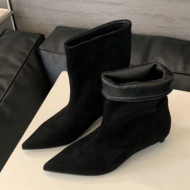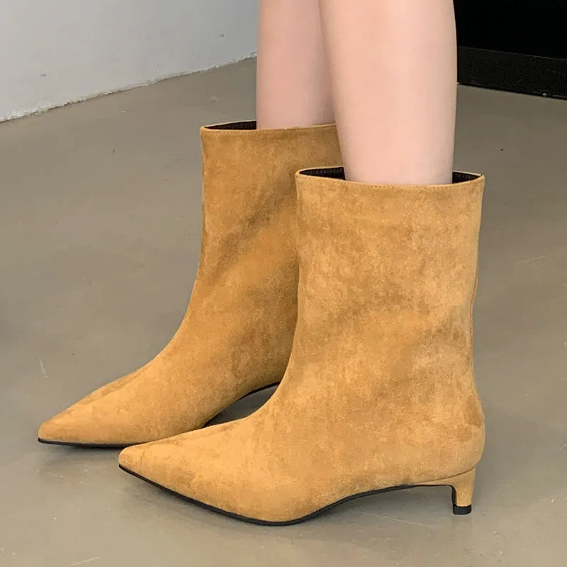 Fashion Pointed Toe Flock Women Ankle Boots Shoes With Low Heel Designer Footwear Slip On Ladies Modern Short Booties Shoes