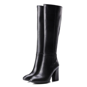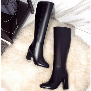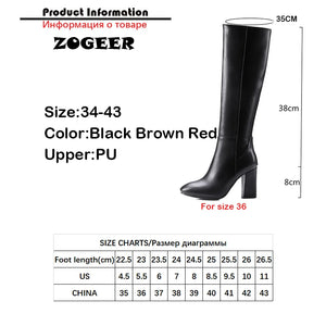 Fashion Red Winter Women's Knee High Boots PU Leather Block High Heels Tall Long Boot Female Zipper Ladies Shoes Black Elegant