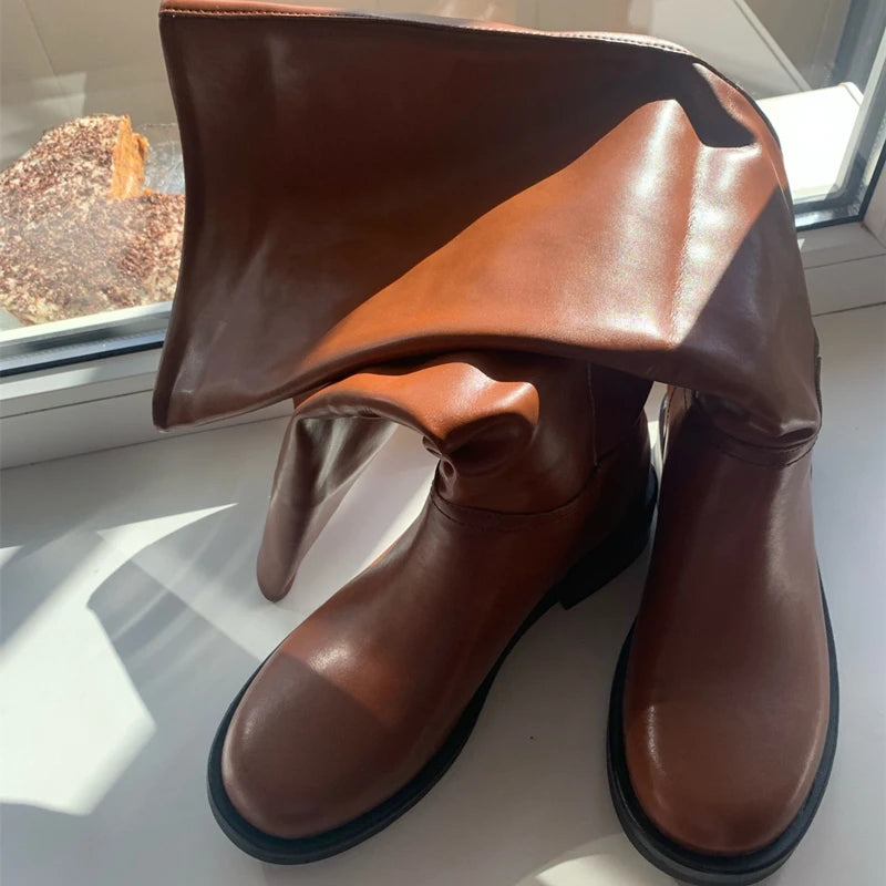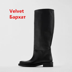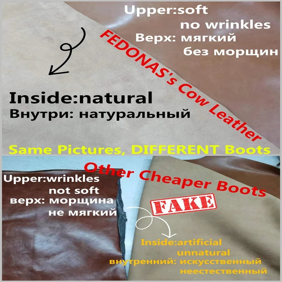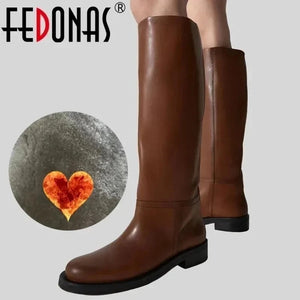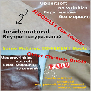 FEDONAS INS Women Knee High Boots Full Cow Leather Warm Boots Thick High Heels Motorcycle Boots Punk Shoes Woman High Boots