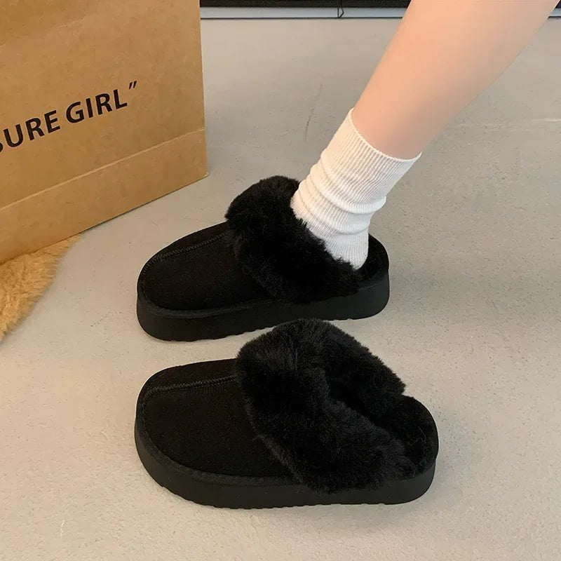 Hairy Slippers Women Wear 2024 New Autumn Winter Korean Version of Muffin Thick Bottom Large Size Bao Head Half Slippers