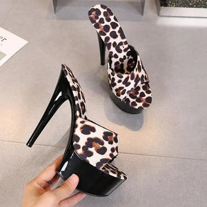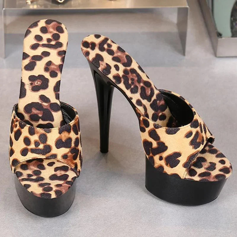 LTARTA Catwalk Model Talons hauts fins avec plateforme noire sexy Talons de 15 cm Sandales à talons ultra-hauts imprimé léopard LFD