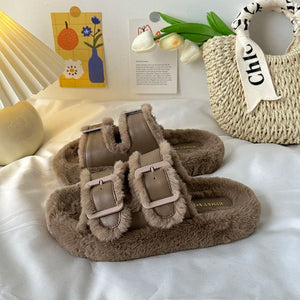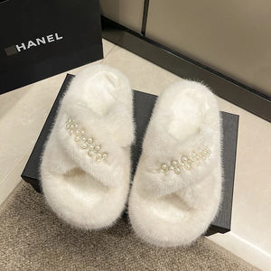 Med Shoes Womens Slippers Outdoor Slides Pantofle Flock Platform Fur Flip Flops 2024 Flat Plush Autumn Fabric Rome Shoes House S