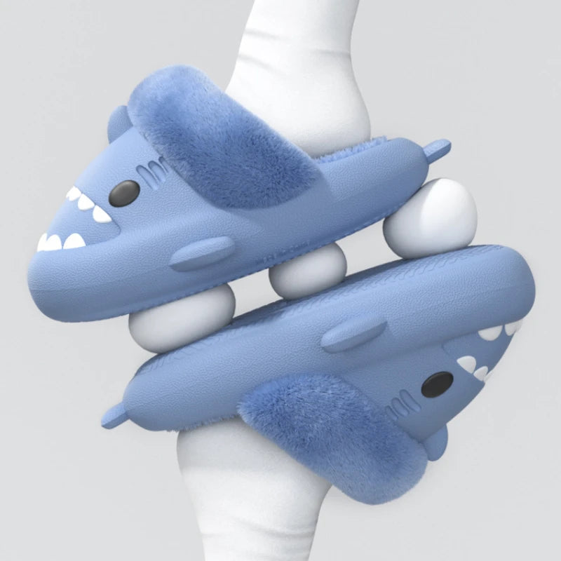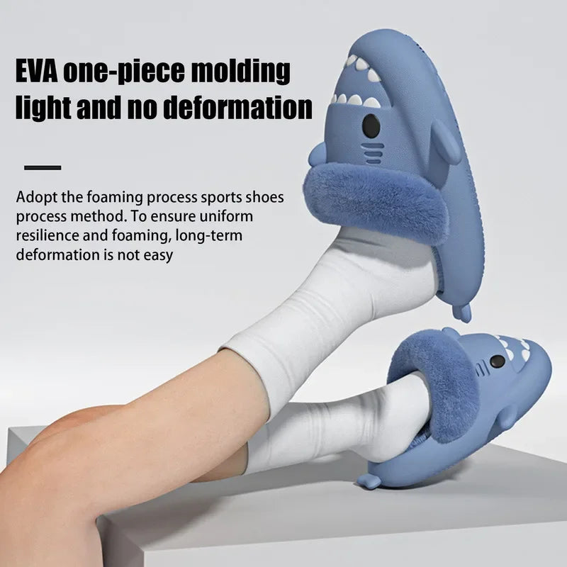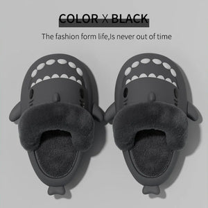 Men'S Winter Plush Shark Slippers Couple Adults Warm Fluffy Slides Soft Household Cartoon Indoor Detachable Home Cotton Shoes