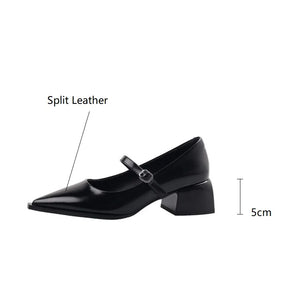 New Spring Split Leather Women Shoes Pointed Toe Women Pumps Fashion Retro Mary Jane Shoes for Women High Heels Ladies Shoes