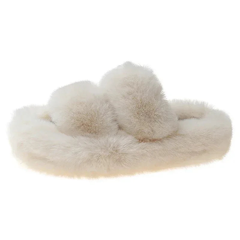 New Winter Open Toe Slipper Fashion Fur Thick Sole Flats Heel Ladies Casual Slip On Bedroom Shoes Soft Outdoor Slides Shoes