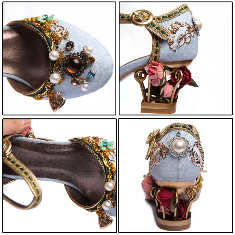 Phoentin velvet ankle strap Chinese wedding shoes women crystal buckle pearl rhinestone flower decoration mary jane shoe FT267