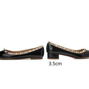 Popular Classic Black Patent Leather Rivet Flat Women Shoes Loafers Ballet Shoes White Mary Jane Pumps Walking Driving