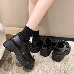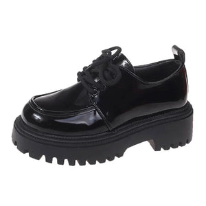 Rimocy Chunky Platform Oxfords Shoes for Women 2025 Spring Non Slip Lace Up Flats Woman Thick Bottom Patent Leather Gothic Shoes