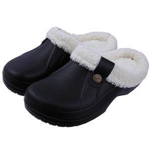 Shevalues New Fur Lined Clogs Women Waterproof Garden Shoes Winter Fluffy Plush House Slippers Couple Non-slip Fuzzy Slippers