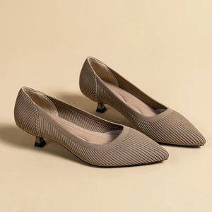 Spring and Autumn Women's Large Shoes 2025 High Heels Solid Color Knitted Breathable Rubber Non slip Sole Latex Insole Work Shoe