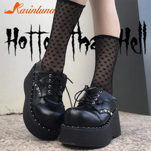 Wedge High Heels Y2k Shoes 2023 Summer Hot Star Graffiti Women Shoes On Platform Punk Gothic Lolita Mary Jean Platform Shoes