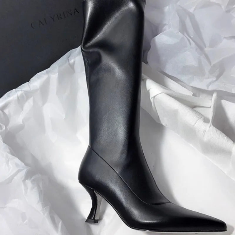Bottes d'hiver à talons fins en coton pour femmes, bottes hautes à la mode, pointues, avec fermeture éclair latérale, antidérapantes et résistantes à l'usure