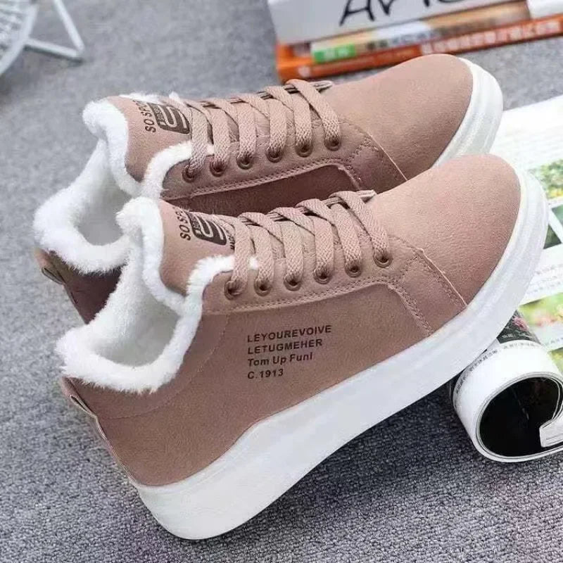 Chaussures d'hiver d'extérieur pour femmes, chaudes, en fourrure, décontractées, à lacets, tendance, bottes de neige à plateforme