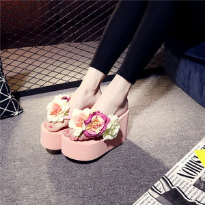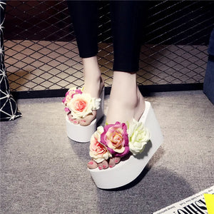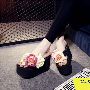 11cm Flip Flop Wedges Heels Summer Sandals Slippers Woman Shoes Women Girls Beach Shoe Light Bottom Platform Handmade Flowers