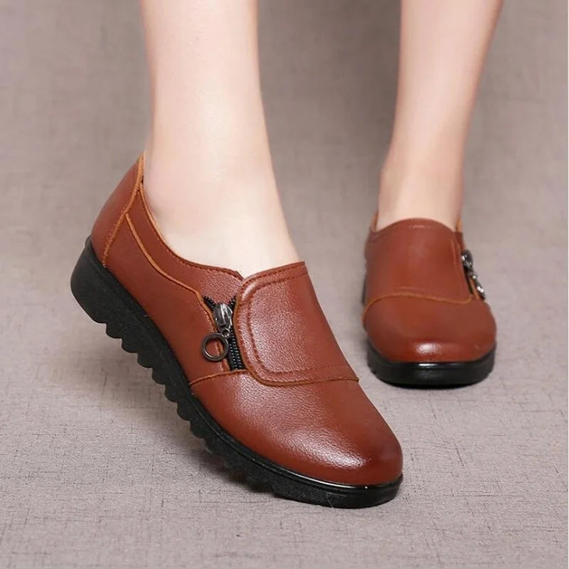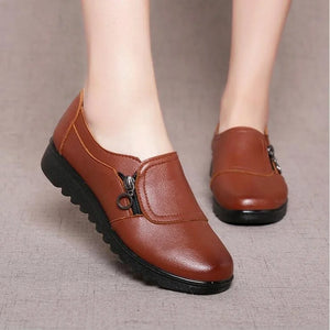 2021 Fashion Soft Leather Round Head Women Casual Flats Ladies Side Zipper Flat Oxford Shoes New Single Non-slip Warm Slope Heel