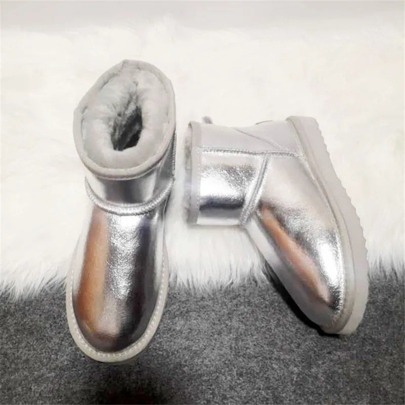 2023 Genuine Leather Waterproof Classic Lady Thick Plush Boots Women's Shoes Warm Shoes Winter Mujer Botas Woman Snow Boots
