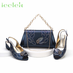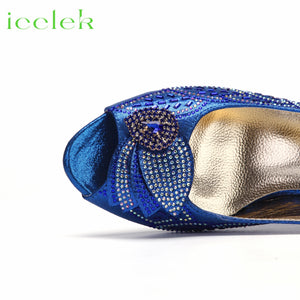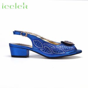 2023 Hot Selling Royal Blue Peep Toe Ladies Sandals Shoes Matching Bag Set For Nigeran Women Wedding Party Pump