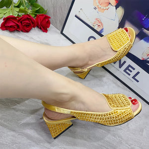 Name: 2023 Italian Design Nigerian Lastest Special Narrow Band And Cross-Tied Style Women Shoes in Gold Color for Party