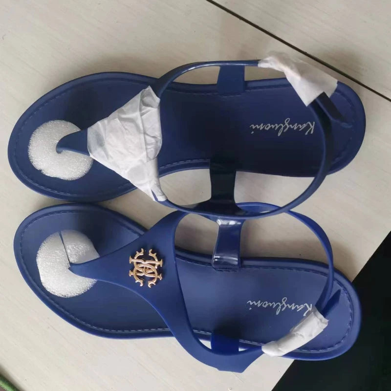 2023 New Summer Women's 、 Fashion Sandals Open Toe Jelly Flip Flops Non-slip Buckle Flat Sandals All-match Women's Sandals