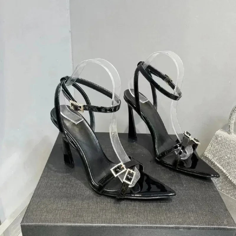 2023 New Womens High Heel Sandals Summer Transparent Heels Luxury Rhinestone Strap Slingbacks Female Sexy Wedding Sandal