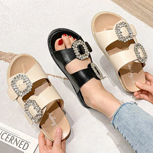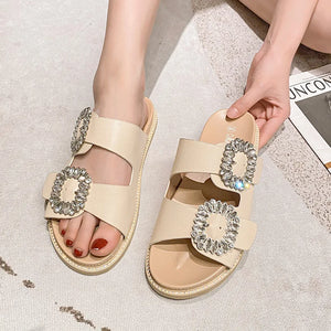 2023 rhinestone crystal buckle slippers women brand design crystal double flip flops female platform slides sandals big size 43