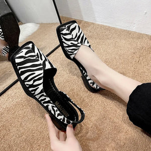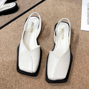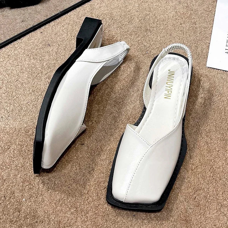 2023 Summer Elegant Ladies Sandals Fashion Ladies Elastic Band Flat Heel Women Shallow Party Shoes Square Heel 35-40 Square Toe