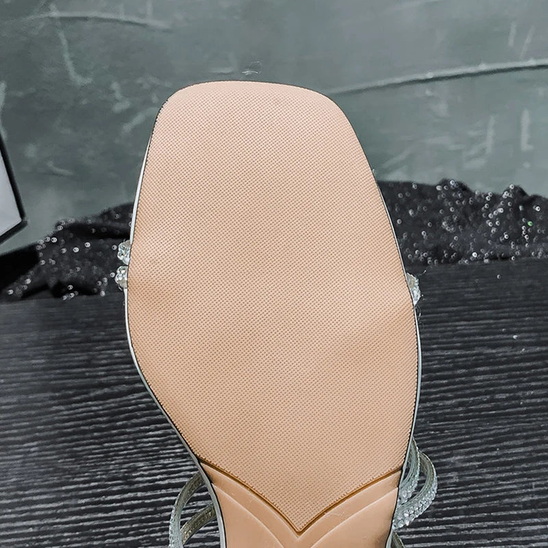 2023 Summer High Heel women's sandals Fashion Strappy Rhinestones design Princess girls shoes Large size slippers